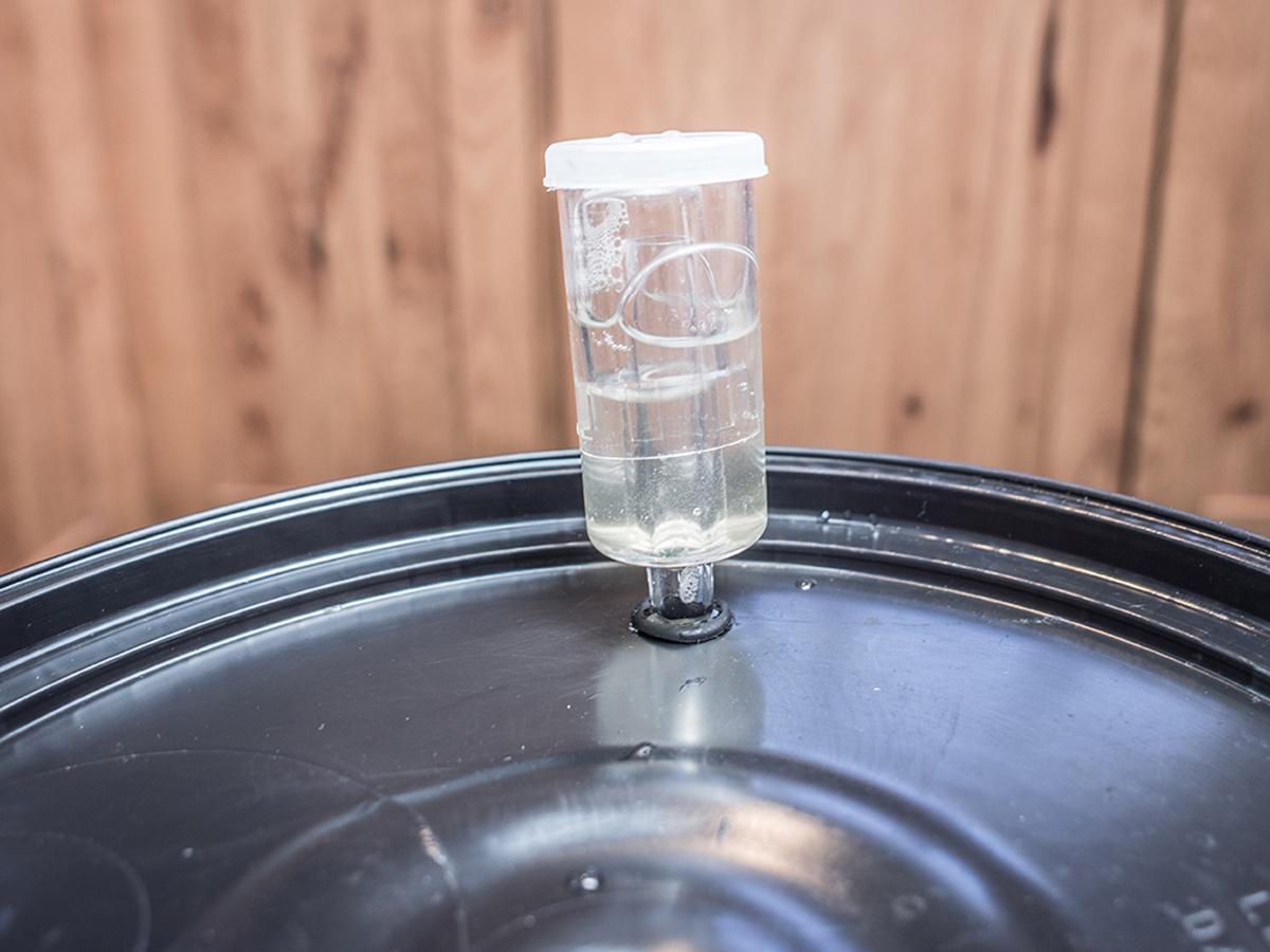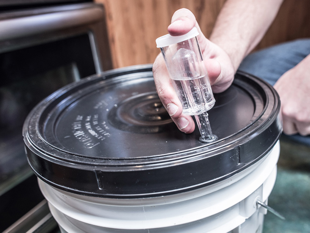 Seal the fermenter with a clean and sanitized airlock and bung.If using a bucket fermenter, a carboy bung is not typically needed.